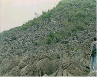 Some landscapes of degraded agro-ecoystems in the subtropical region of China. 1 (from the left): in the Karst region; 2: in the hilly red-earth region; and 3: in the Dongting Lake region.
