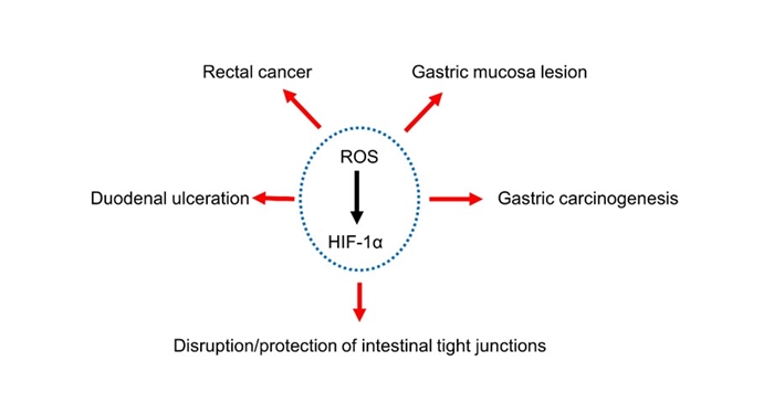 Understanding the interactions between HIF and ROS may help developing new therapies for gastrointestinal diseases associated with ROS and HIF-1α.