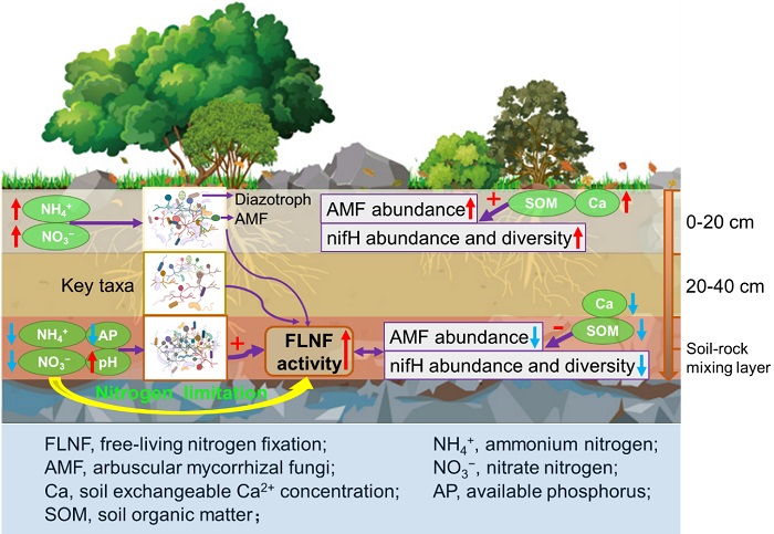 Fig.4 Diazotroph and AMF driving free-living N fixation activity at different soil depths.(Image by Xiao Dan)